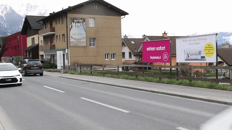 Beschreibung LED Anzeigetafel, Fahrtrichtung Feldkirch Fahrzeuge pro Woche: ca. 85'000 **** Höchste Bildqualität und ein MEGA Format von 3m Breite x 2m Höhe **** 17 Std. pro Tag von 6 — 23 Uhr projiziert **** 224 Schaltungen pro Woche garantiert mit jeweils 3 Min. Laufzeit. Sujetwechsel möglich.